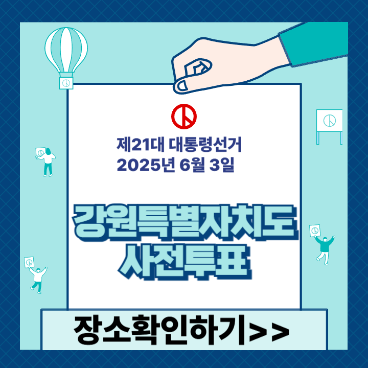 제21대 대통령선거(2025년 6월 3일) 강원특별자치도 유권자분들을 위한 사전투표소 정보 안내글입니다.